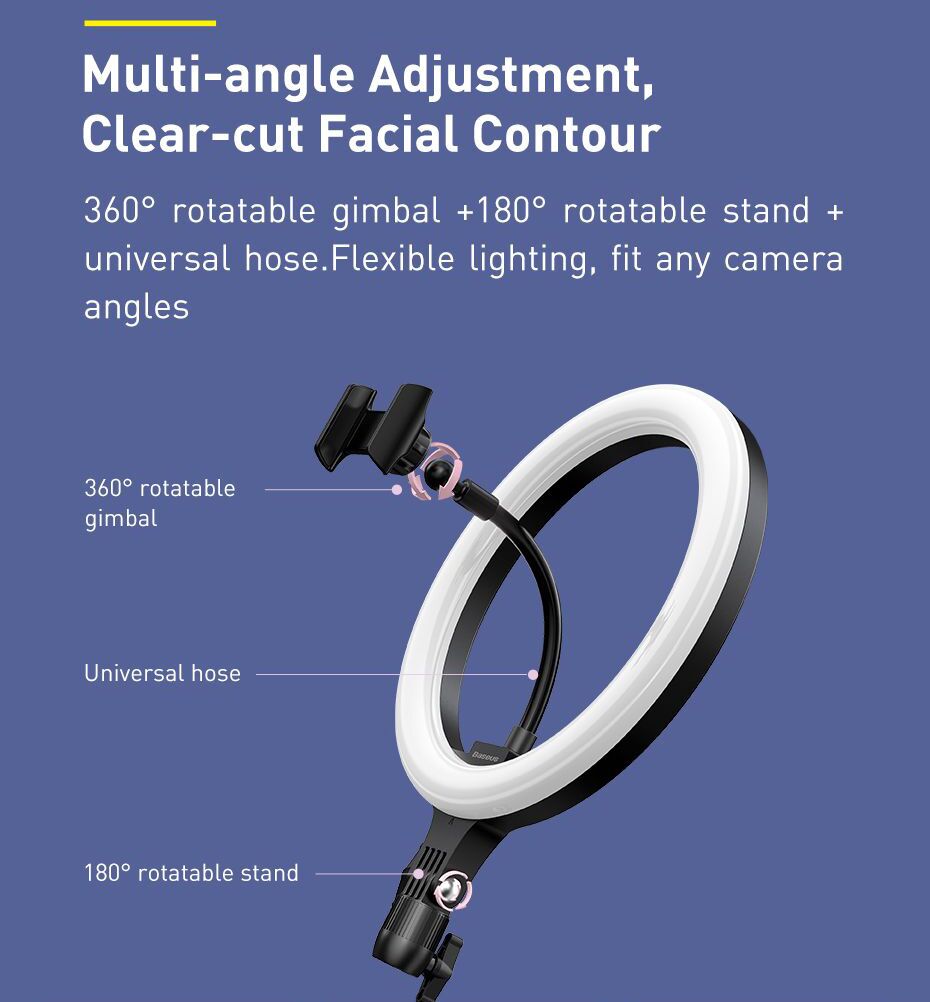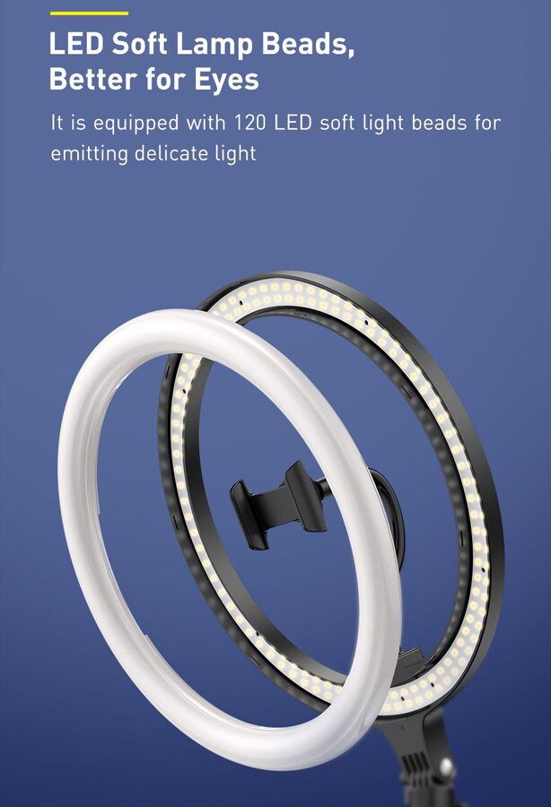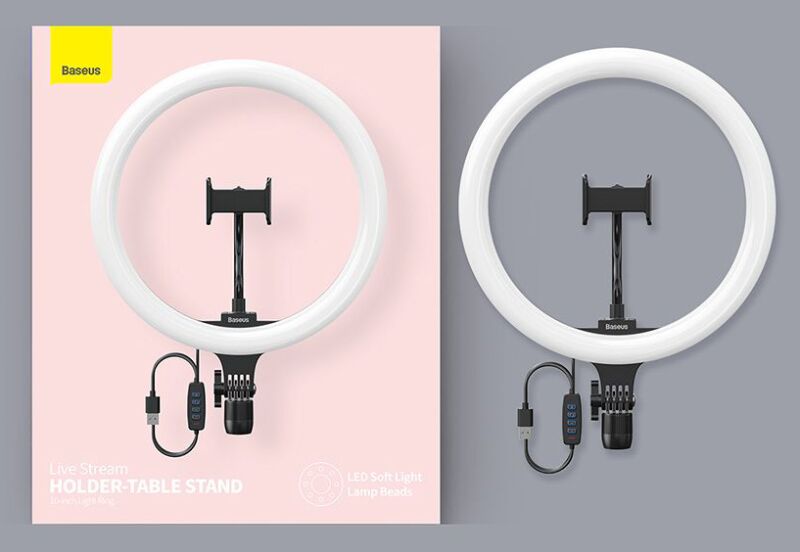 BASEUS φωτιστικό δαχτυλίδι LED CRZB12-B01, 12″, χωρίς τρίποδα, μαύρο