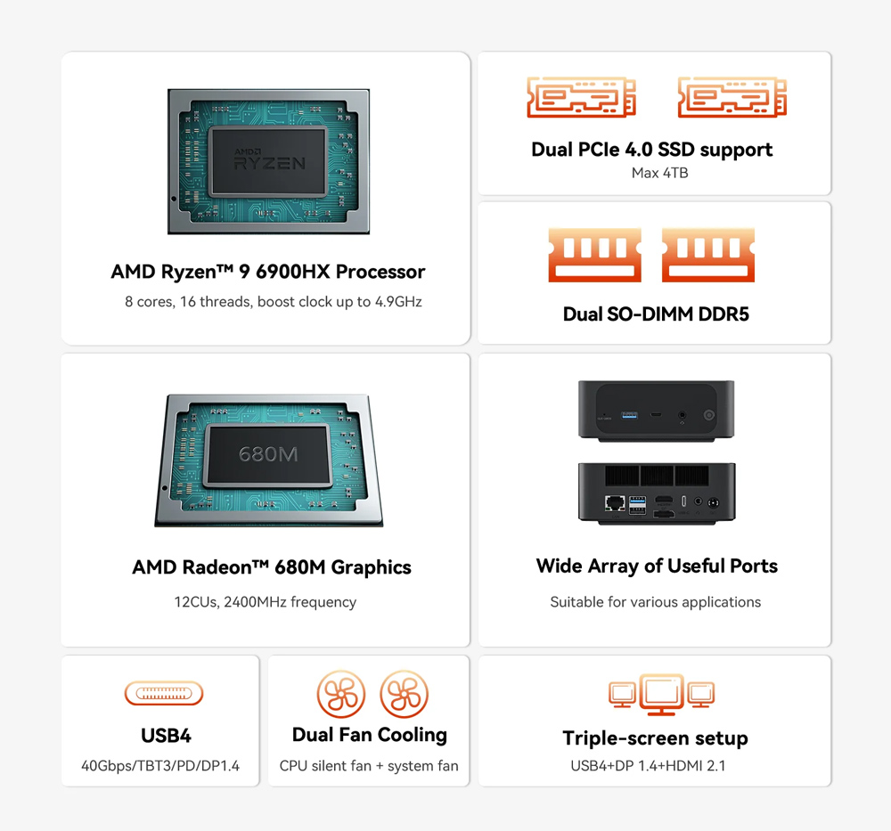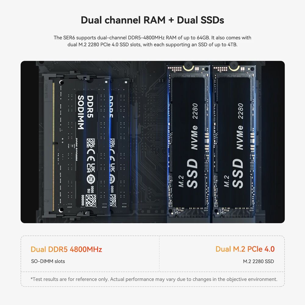 Με οχταπύρηνο επεξεργαστή Ryzen 9 6900HX, μνήμη RAM 16GB, 500GB M.2 SSD και προεγκατεστημένο λειτουργικό Windows 11 pro, το SER 6 προσφέρει πολύ ομαλή εμπειρία για να εργαστείτε, να δείτε ταινίες, να παίξετε παιχνίδια ή να περιηγηθείτε στο διαδίκτυο, από το σπίτι ή το γραφείο.