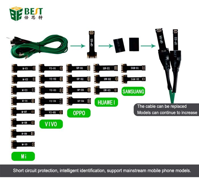 Repair tool της Best για τον έλεγχο αμπέρ και voltage σε iPhone & Android smartphones. Στην συσκευασία συμπεριλαμβάνονται flex cables για την σύνδεση με τα περισσότερα μοντέλα Android και iPhone.