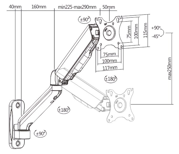 Arm Full Extension: 450mm (17.7″)