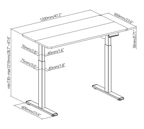 Διαστάσεις: 1200 x 600 x 730~1210mm