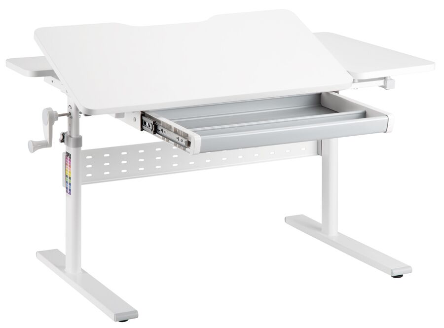 Παιδικό γραφείο από την Brateck με εργονομικό σχεδιασμό που προσφέρει ρυθμιζόμενο ύψος και γωνία κλίση της επιφάνειας εργασίας, μέσω ενός ειδικού μηχανισμού, ο οποίος είναι εύκολος στην χρήση, ακόμη και από το παιδί. Η ρύθμιση της κλίσης της επιφάνειας είναι πολύ σημαντική, καθώς προσφέρει έναν εργονομικό χώρο εργασίας και αποτρέπει τις αντανακλάσεις, ώστε να μην κουράζονται τα μάτια. Επιπλέον, το γραφείο διαθέτει ένα μεγάλο και πολύ πρακτικό συρτάρι με θήκες και κρεμάστρα σακιδίου.