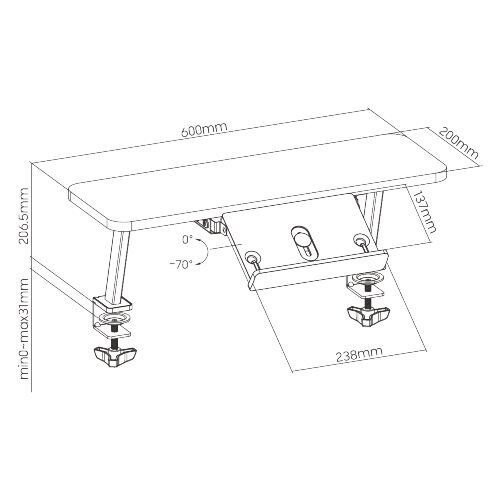 Tilt: 0° ~ -70°
