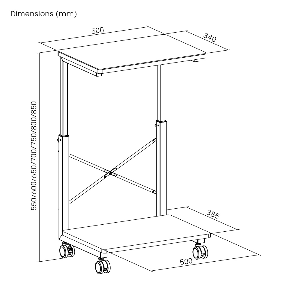 -Διαστάσεις: 500 x 385 x 550~850mm