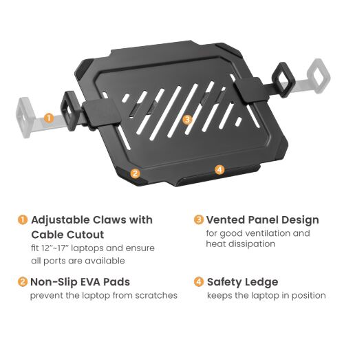Μεταλλική βάση για laptop από 12″ έως 17″ με βάρος έως 9kg. Τοποθετείται εύκολα σε βάσεις γραφείου για οθόνες προδιαγραφών VESA 75×75 και 100×100.