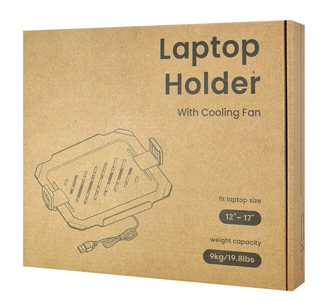 Η επιφάνεια τοποθέτησης του laptop διαθέτει αντιολισθητικά pads σιλικόνης ώστε να είναι πιο σταθερή και να μην γλιστράει η συσκευή. Η τροφοδοσία του ανεμιστήρα γίνεται μέσω καλωδίου USB.