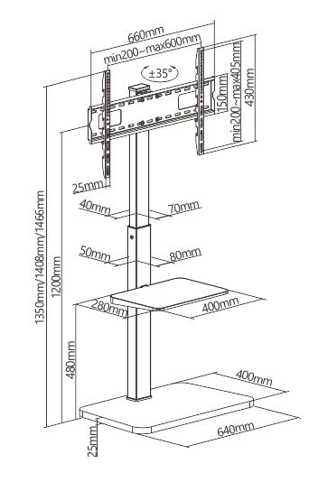 -μέγιστο φορτίο: βάση τηλεόρασης: 40kg, ράφι: 5kg