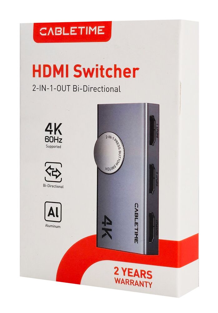 6 Φεβρουαρίου, 2026CABLETIME HDMI switch CT-HS4K2-AG, 2 σε 1, 4K/60Hz, bi-directional, γκρι