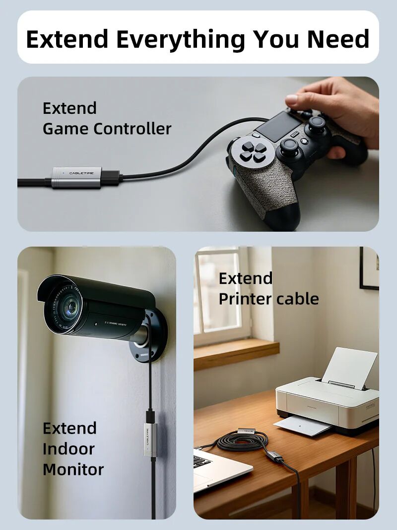 Καλώδιο USB αρσενικό σε θηλυκό της Cabletime ιδανικό για την προέκταση συνδέσεων μεταξύ υπολογιστών και περιφερειακών με USB διεπαφή.