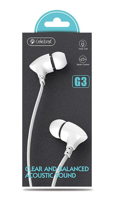CELEBRAT earphones με μικρόφωνο G3, 3.5mm σύνδεση, Φ10mm, 1.2m, λευκά