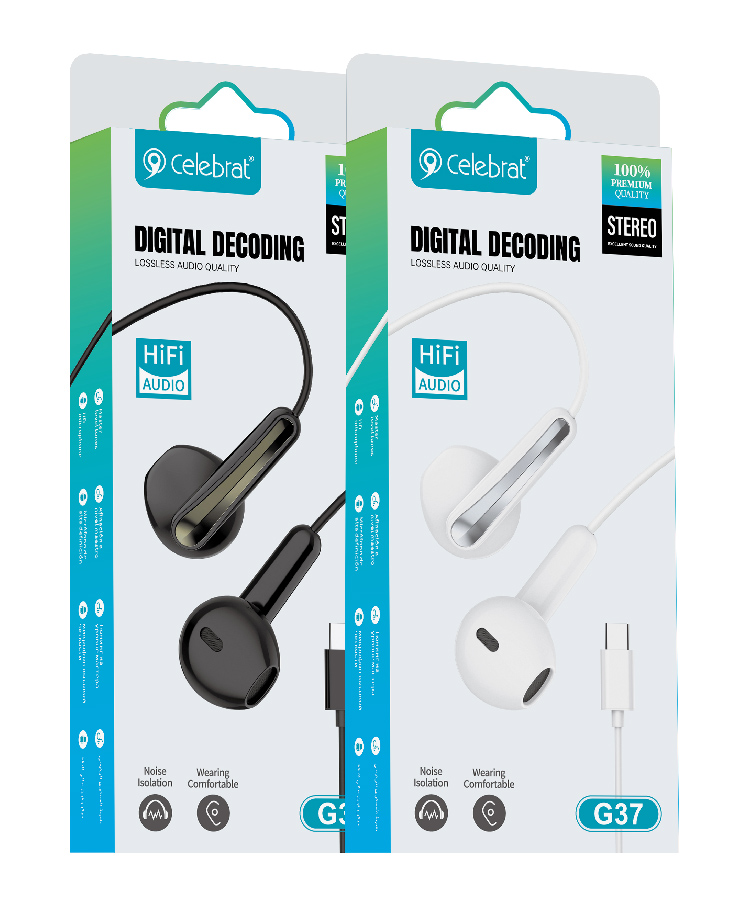 CELEBRAT earphones με μικρόφωνο G37, USB-C σύνδεση, 14.2mm, 1.2m, μαύρα