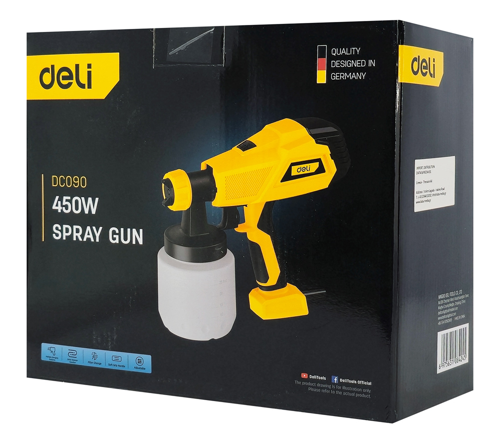 DELI ηλεκτρικό πιστόλι βαφής DC090 με δοχείο 800ml, 450W