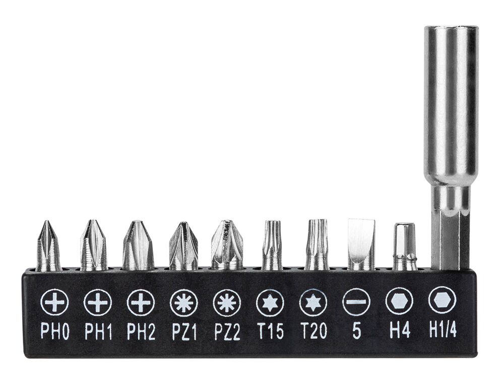 Στη συσκευασία συμπεριλαμβάνονται 9 μύτες κατσαβιδιού, αντάπτορας επέκτασης, καλώδιο φόρτισης και πλαστική θήκη μεταφοράς.