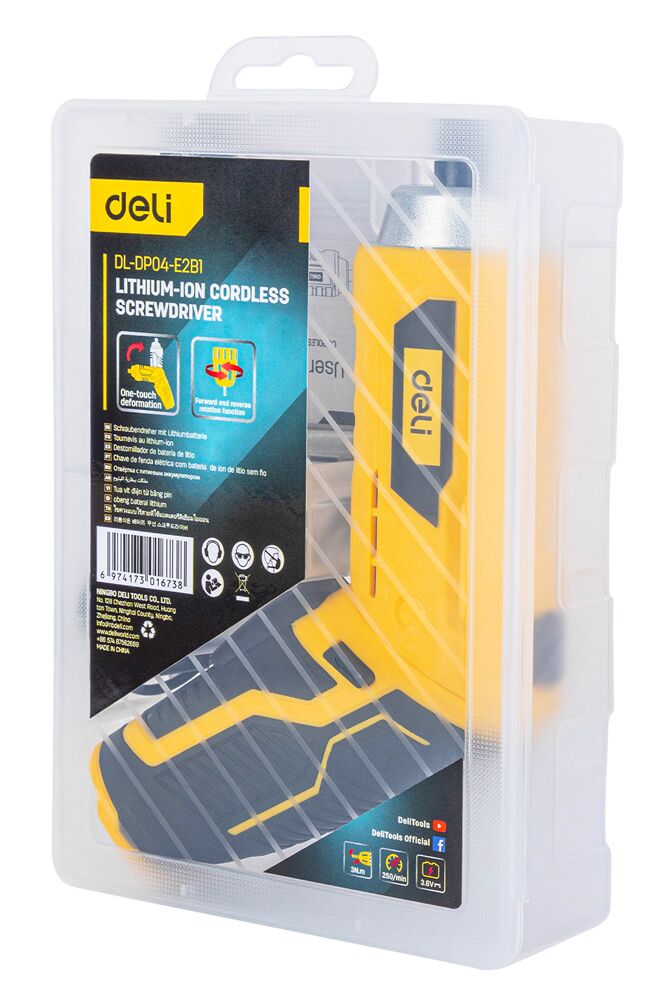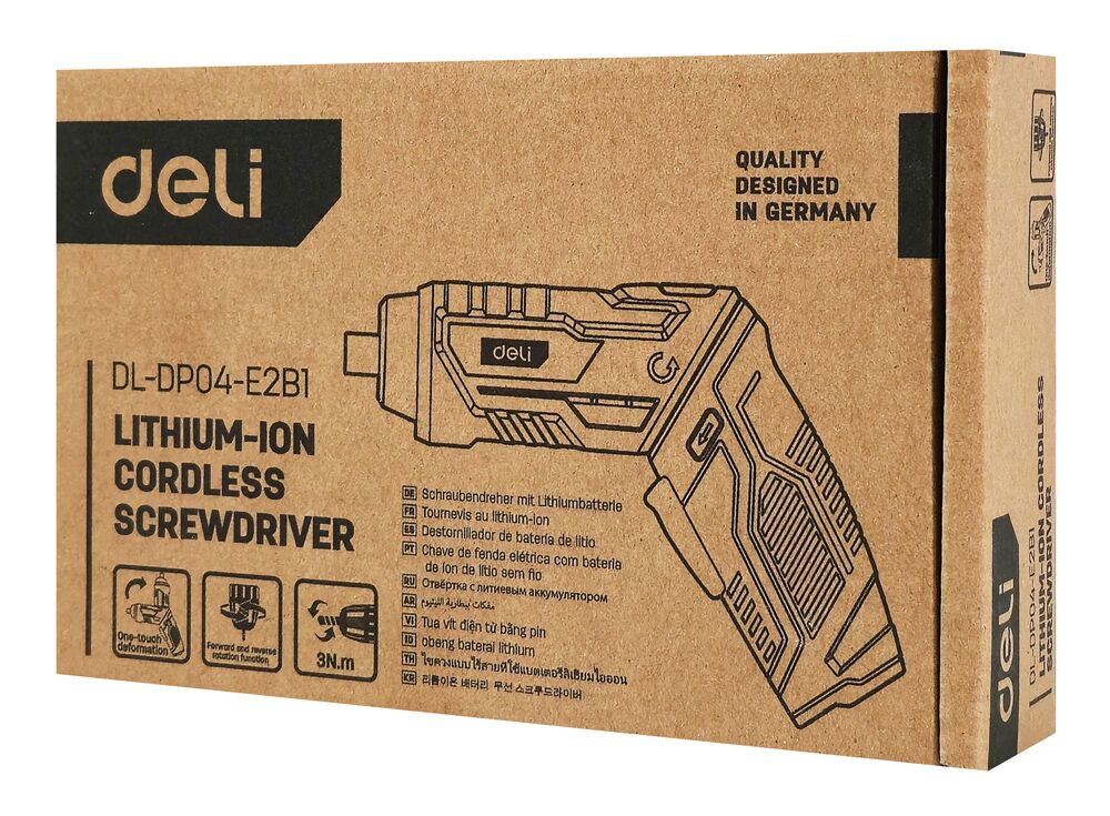 Κατσαβίδι μπαταρίας της Deli με ισχυρό κινητήρα 3N.m και βολική με περιστροφική λαβή για άνετη εργασία.