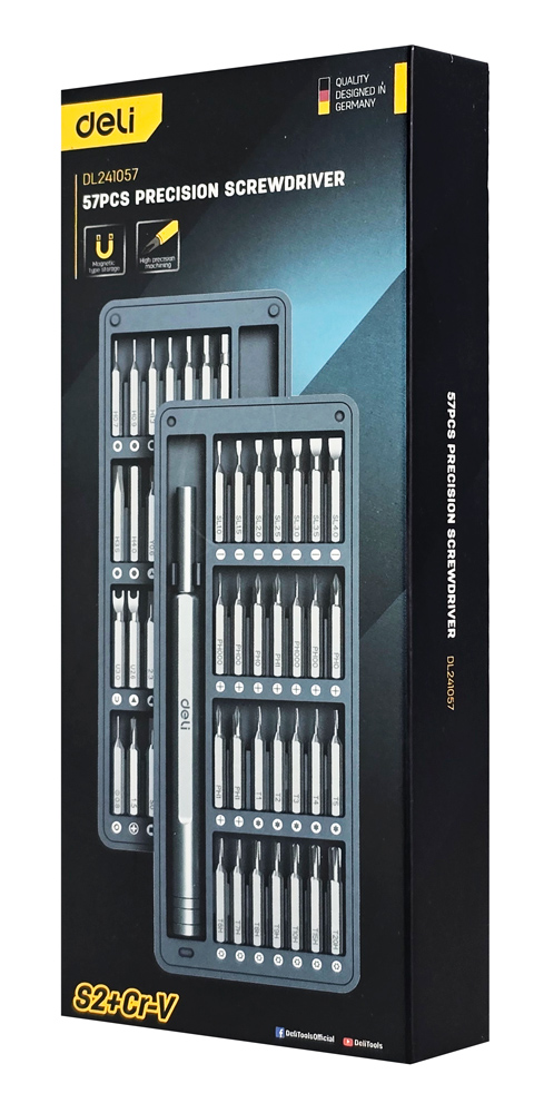 DELI σετ κατσαβίδι ακριβείας DL241057 με 56 μύτες, με θήκη, 57τμχ