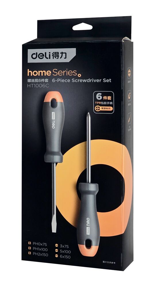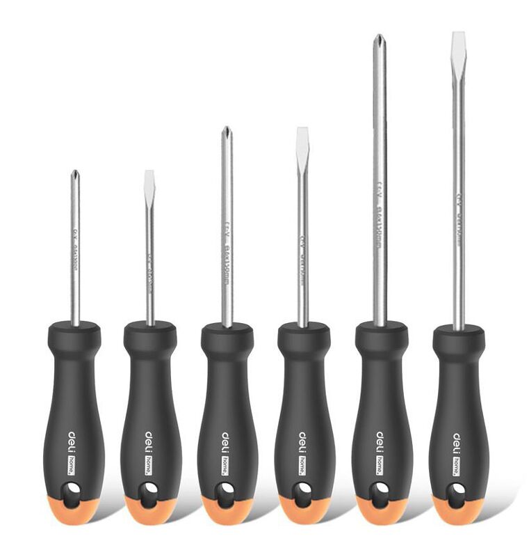 Σετ κατσαβιδιών της Deli που αποτελείται από 3 ίσια κατσαβίδια και 3 σταυρωτά.