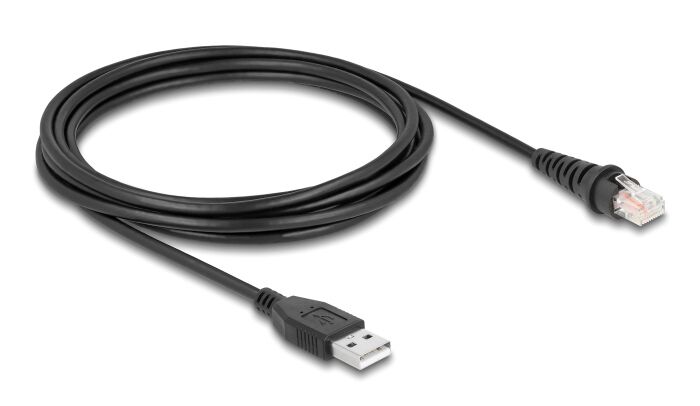 Καλώδιο USB σε RJ50 από την Delock, κατάλληλο για την σύνδεση ενός barcode scanner με υποδοχή RJ50 σε έναν υπολογιστή.