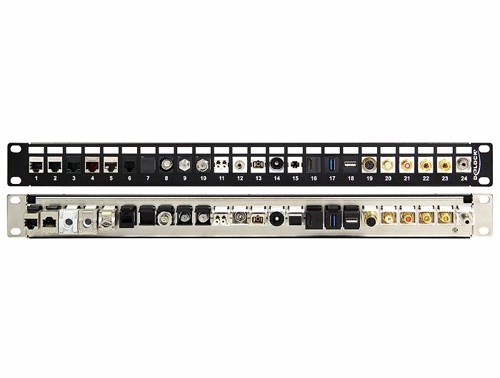 This Patch Panel by Delock can be mounted in a 19″ rack. With its standardized dimensions, it is suitable for easy snap-in mounting of 24 Keystone modules.