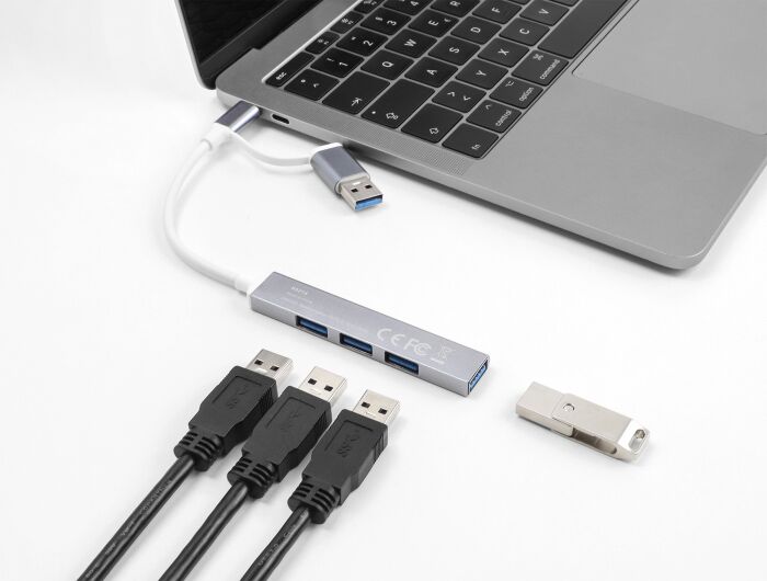 Αυτό το hub της Delock μπορεί να συνδεθεί με το laptop ή το tablet σας μέσω θύρας USB ή USB-C και να επεκτείνει τις θύρες του με 4x USB θύρες, επιτρέποντας σας να συνδέσετε οποιαδήποτε συσκευή διαθέτει έξοδο USB.