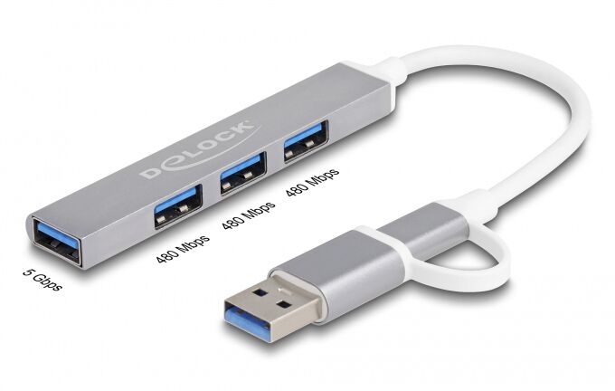 5 Φεβρουαρίου, 2026DELOCK USB hub 64214, 4x θυρών, 5Gbps, USB & USB-C σύνδεση, γκρι