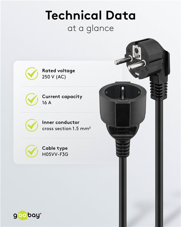 GOOBAY μπαλαντέζα προέκταση ρεύματος 93094, schuko, 3x 1.5mm², 5m, μαύρη - Image 5