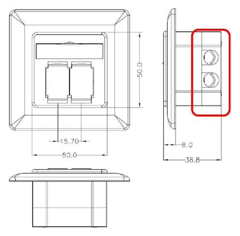Επιτοίχια πρίζα με 2 θύρες δικτύου για σύνδεση καλωδίων με βύσμα RJ45. Είναι θωρακισμένη, ικανή για ταχύτητες 10 GBit Ethernet και ιδανική για χρήση PoE+ IEEE 802.3at.