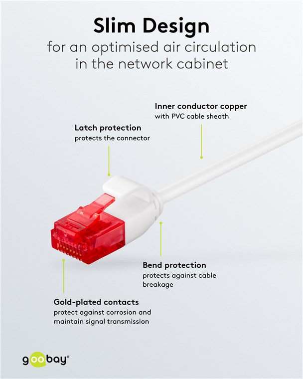 Τα καλώδια δικτύου της Goobay κατασκευάζονται από ποιοτικά υλικά, με τις υψηλότερες τεχνικές προδιαγραφές, προσφέροντας αξιόπιστη λειτουργία υψηλής απόδοσης, με αντοχή στον χρόνο.