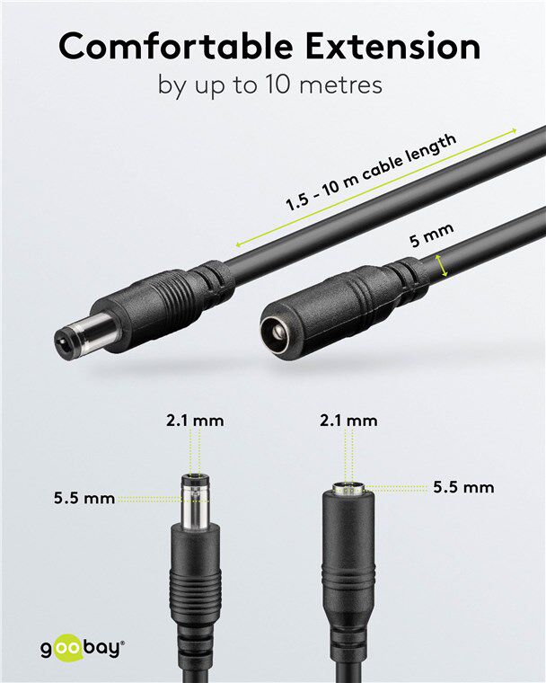 GOOBAY καλώδιο προέκτασης τροφοδοσίας 76635, 5.5×2.1mm, 1.5m, μαύρο