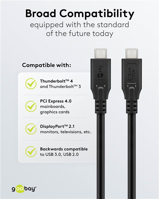 Καλώδιο USB-C της Goobay με εξαιρετικά γρήγορους ρυθμούς μεταφοράς δεδομένων έως 20Gbps και υψηλή απόδοση φόρτισης έως 100W.