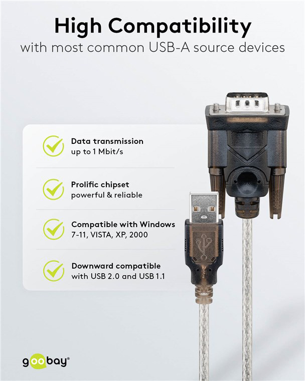 Καλώδιο USB σε RS-232 από την Goobay, κατάλληλο για την σύνδεση σειριακών συσκευών σε θύρα USB.