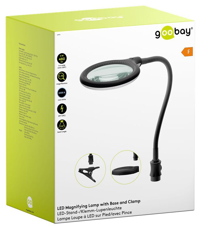 GOOBAY μεγεθυντικός φακός 64990 με κλιπ & βάση, LED, 3 διόπτρες 1.75x