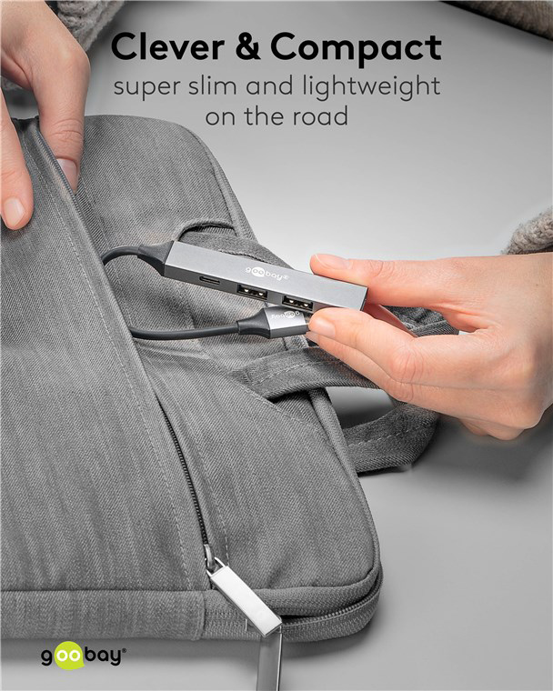 Αυτό το hub της Goobay μπορεί να συνδεθεί με το laptop ή το desktop σας μέσω θύρας USB και να επεκτείνει τις θύρες του με 1x USB-C και 3x USB θύρες. Διαφορετικές συσκευές USB, όπως εξωτερικοί σκληροί δίσκοι, card readers, ποντίκια κλπ. μπορούν να συνδεθούν μέσω του hub.