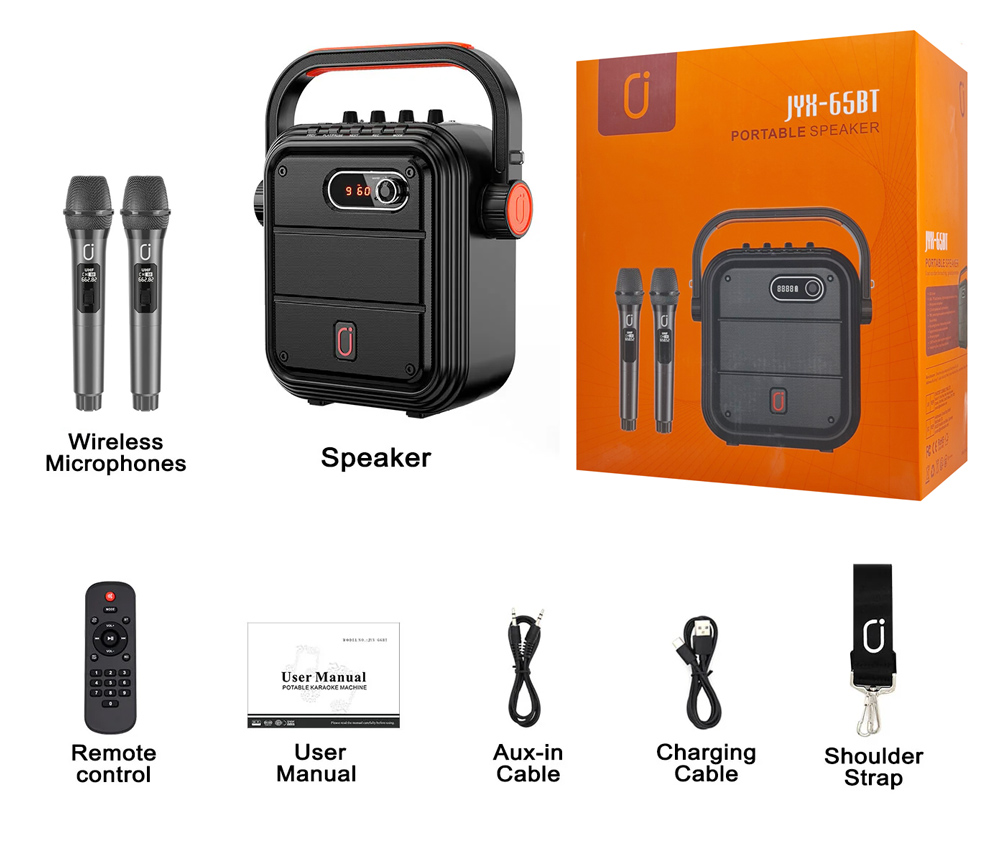 JYX φορητό ηχείο 65BT με 2x μικρόφωνα & ασύρματο χειριστήριο, 30W, 4400mah, μαύρο