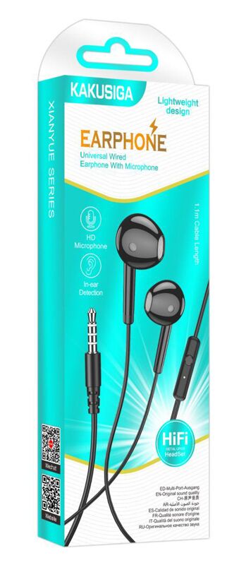 KAKUSIGA earphones με μικρόφωνο KSC-1301, 3.5mm σύνδεση, 14mm, 1.1m, μαύρα