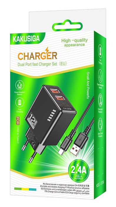 Υψηλής απόδοσης φορτιστής τοίχου της KAKUSIGA, κατασκευασμένος από ανθεκτικό υλικό και συμβατός με συσκευές που φορτίζουν μέσω θύρας USB.