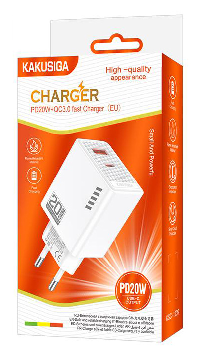 KAKUSIGA φορτιστής τοίχου KSC-1239, USB & USB-C, 20W, λευκός