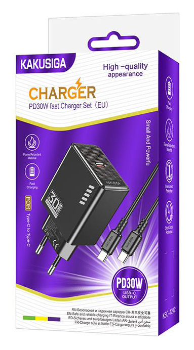 KAKUSIGA φορτιστής τοίχου KSC-1242 με καλώδιο USB-C, USB-C, 30W, μαύρος
