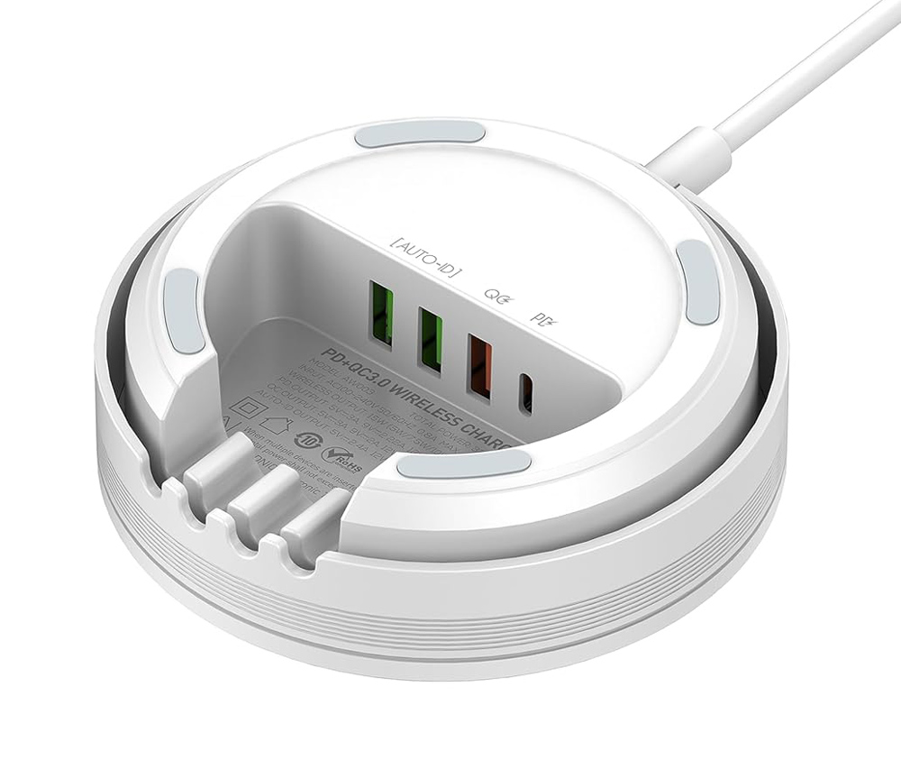 Διαθέτει 3x USB και 1x USB-C θύρες εξόδου που υποστηρίζουν φόρτιση με απόδοση έως 32W. Επιπλέον, υποστηρίζει ασύρματη φόρτιση με απόδοση έως 15W.