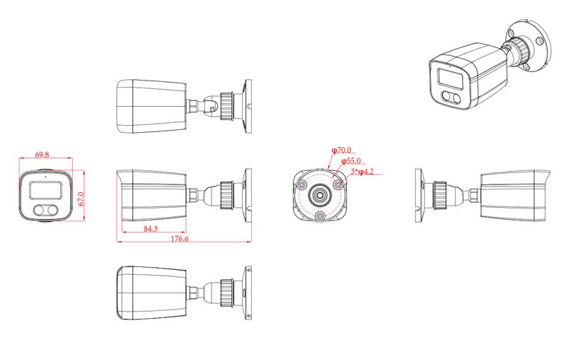 Υβριδική κάμερα 4 σε 1 (AHD, TVI, CVI, CVBS), με φακό 2.8mm, 1/2.5″ CMOS αισθητήρα, ανάλυση 8MP και εμβέλεια φωτός έως 25m. Διαθέτει διακόπτη για να αλλάξετε την λειτουργία εύκολα και γρήγορα σε AHD, TVI, CVI, CVBS, αλλά και μικρόφωνο για μεταφορά ήχου μέσω του ομοαξονικού καλωδίου (Audio Over Coaxial) χωρίς να απαιτείται χρήση έξτρα καλωδίου. Διαθέτει μεταλλικό σώμα με στεγανοποίηση επιπέδου IP67 γεγονός που την καθιστά κατάλληλη για χρήση σε εξωτερικούς χώρους.