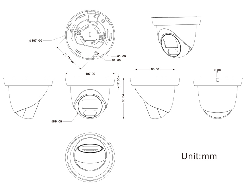Υβριδική κάμερα 4 σε 1 (AHD, TVI, CVI, CVBS), με φακό 2.8mm, 1/3″ CMOS αισθητήρα, ανάλυση 5MP και εμβέλεια φωτός έως 25m. Διαθέτει διακόπτη για να αλλάξετε την λειτουργία εύκολα και γρήγορα σε AHD, TVI, CVI, CVBS, αλλά και μικρόφωνο για μεταφορά ήχου μέσω του ομοαξονικού καλωδίου (Audio Over Coaxial) χωρίς να απαιτείται χρήση έξτρα καλωδίου.