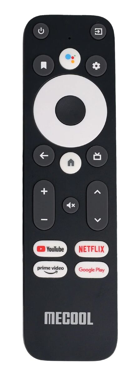 Τηλεχειριστήριο, συμβατό με TV Box της Mecool που υποστηρίζουν Bluetooth σύνδεση. Διαθέτει πλήκτρα YouTube, Prime Video, Google Play, Netflix και υποστηρίζει φωνητικές εντολές με Google Assistant.