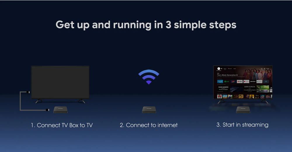 Το TV box KM7 SE της Mecool, συνδέεται στη θύρα HDMI της τηλεόρασής σας και την μετατρέπει σε smart TV.