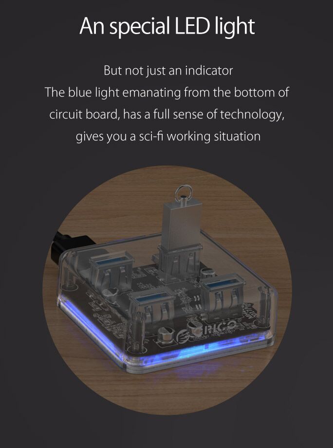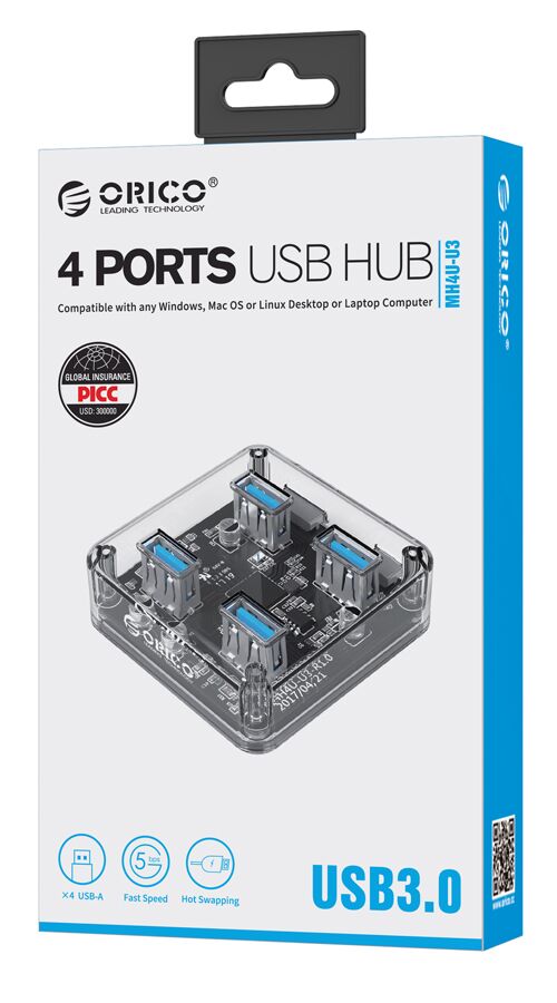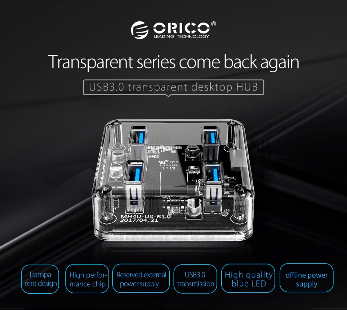 ORICO USB hub MH4U-U3, 4x θυρών, 5Gbps, διάφανο