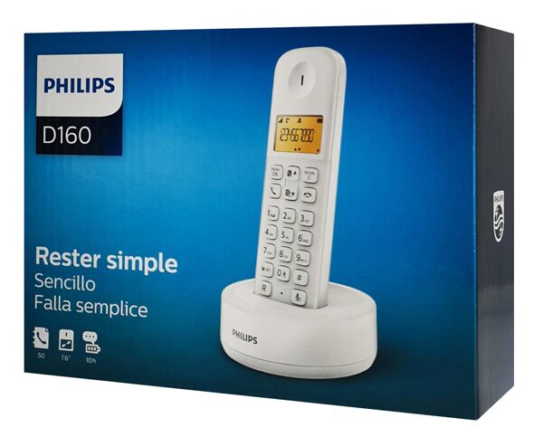 Το ασύρματο τηλέφωνο D160 της Philips συνδυάζει τις έξυπνες και βασικές λειτουργίες με τη φρέσκια και ελκυστική του σχεδίαση. Με την εξαιρετική αναπαραγωγή ήχου, τις έξυπνες λειτουργίες και τη λειτουργία plug & play, θα απολαμβάνετε κάθε συνομιλία με εξαιρετική ευκρίνεια και άνεση.