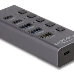 DELOCK USB hub 64248 με διακόπτες, 5x θυρών, 5Gbps, USB/USB-C σύνδεση, γκρι