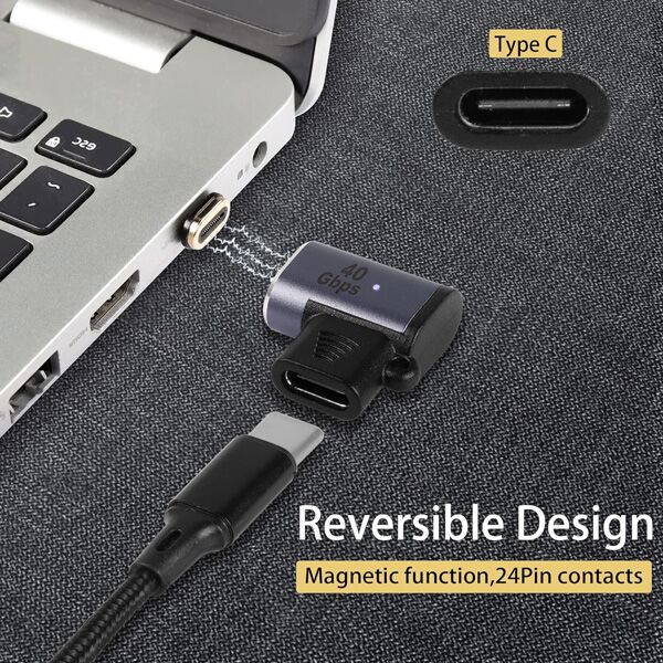POWERTECH αντάπτορας USB-C PTH-107, μαγνητικός, 100W, 40Gbps, γκρι