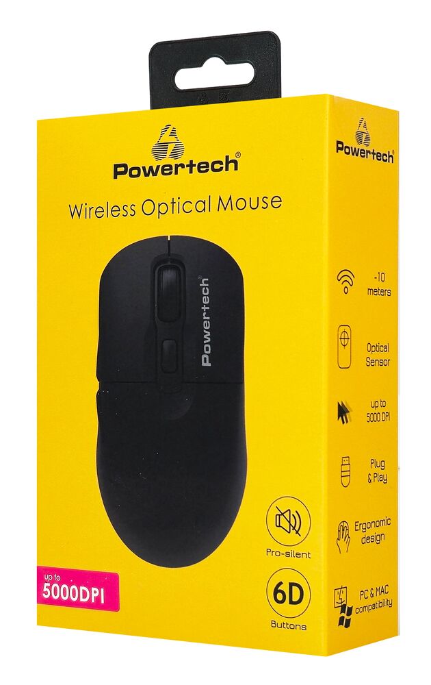 POWERTECH ασύρματο ποντίκι PT-1542, 2.4GHz, έως 5000DPI, αθόρυβο, μαύρο