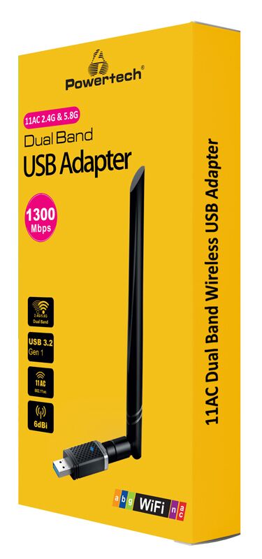 POWERTECH ασύρματος USB αντάπτορας δικτύου PT-1132, 1300Mbps, 2.4/5GHz