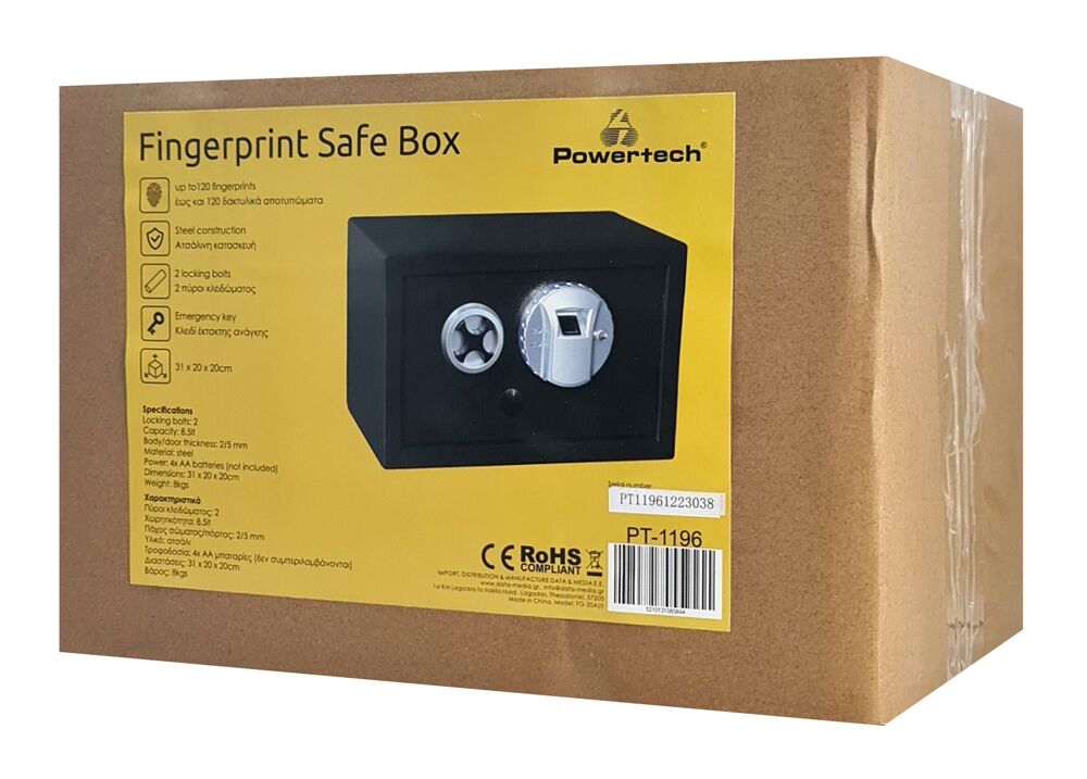 POWERTECH χρηματοκιβώτιο PT-1196 με δακτυλικό αποτύπωμα, 31x20x20cm, 8kg