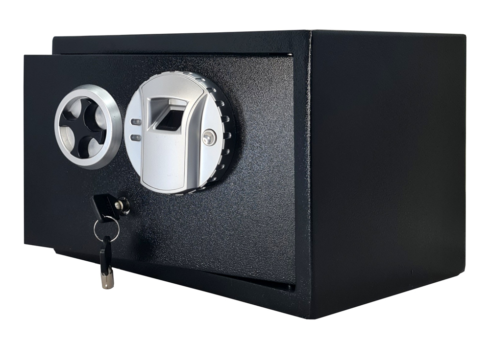 Χρηματοκιβώτιο της Powertech με δύο ενισχυμένους πύρους κλειδώματος, κατασκευασμένο από ατσάλι. Διαθέτει ψηφιακή κλειδαριά, με δακτυλικό αποτύπωμα, που σας επιτρέπει να κλειδώνετε και να ξεκλειδώνετε εύκολα το χρηματοκιβώτιο με το αποτύπωμα του δαχτύλου σας αλλά και κλειδαριά ασφαλείας με κλειδί που ανοίγει το χρηματοκιβώτιο σε περίπτωση ανάγκης.
